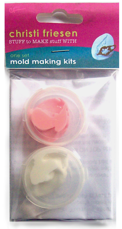 | Christi Freisen Marvelous Molds – Stuff to make Stuff with! 1 set (15 grams) in pre-measured containers, with instructions. Molded patterns, textures and sculptural elements can add a wonderful dimension and variety to your creations! Make your own! of natural textures like shell and bark, or make an impression of antique buttons and molded ornamentation, or create duplicates of one of your own sculpted pieces easily, over and over! If you haven't made molds yet, it's time! This is a good way to see how you like creating and using molds. This set contains one heaping spoonful of silicon mold-making material and the instructions for using it. (It's a two-part mix that is activated when equal parts of the white and pink putties are thoroughly mixed!) It's sooo easy. No harmful fumes or residue. |