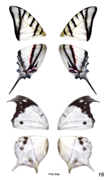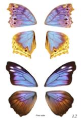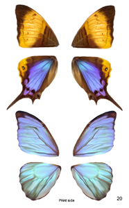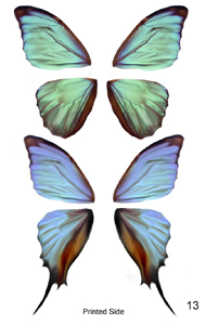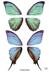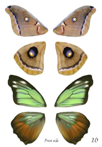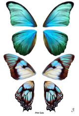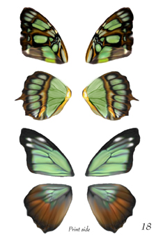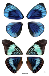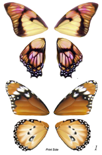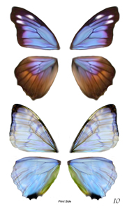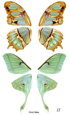 | The colors will vary slightly depending on which type of medium they are printed on. These wings are available in Translucent Vellum paper and Transparency film. Transparency film will have deeper, more intense looking color when you receive them in their packaging, but when removed from the package and the light allowed to pass through, the colors will appear more like the images below. Translucent Vellum will produce a soft image, but still full of color. Your Fairies deserve Fantasy Watercolor Wings! Contact me for custom wing prints. Click images to enlarge Transparencies 3.50 ea Vellum 3.00 ea |