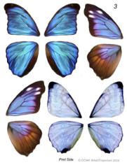 | Several of these individual wing patterns are shown on other Watercolor combinations. To help determine which of the Watercolor sheets above the image is located, I've given specific numbers to these sheets. The WC is for Watercolor. The number is the original sheet number. The "T " is for the top image and "B" is for the bottom image. WC14T is Tranparency only and WC19T and B are Vellum only. |